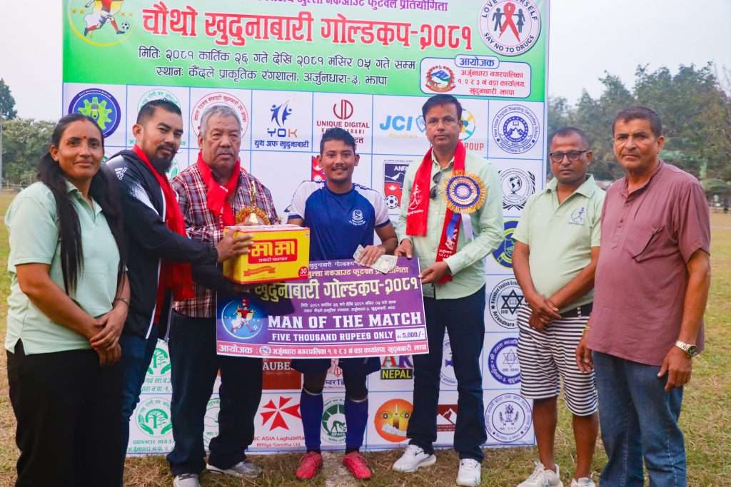 अर्जुनधारा । सनम भुजेलको ४ गोलको मदतमा मेचीनगर नगपालिका चौंथो खुदुनाबारी गोल्डकप २०८१को सेमीफइनलमा प्रवेश गरेको छ ।