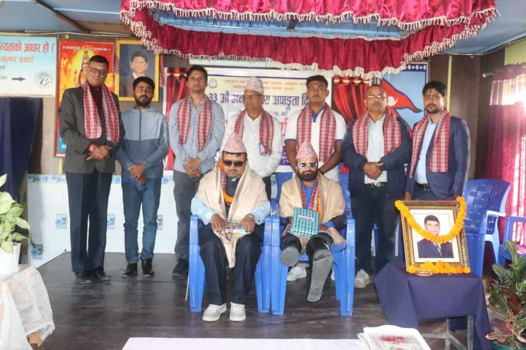 बिर्तामोड-५ मा अवस्थित न्युटन्स एजुकेसन एकेडेमीमा रहेको बाल क्लबले समावेशी तथा दिगो भविष्यको आधार, अपाङ्ग भएका व्यक्तिहरुको प्रवल नेतृत्वको आधार भन्ने मुल नाराका साथ आयोजित कार्यक्रममा दुर्गा माध्यमिक विद्यालयका शिक्षकद्वय पदम अधिकारी र चन्द्र भट्टराईलाई दोसल्ला, टोपी र मायाको चिनोले सम्मान गरिएको विद्यालयका प्रिन्सिपल देवेन्द्र हुमागाईले जानकारी दिनुभयो।