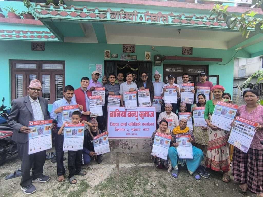 झापा। । बानिया बन्धु समाज, झापाले एक कार्यक्रमको आयोजना गरी भित्तेपात्रो विमोचन तथा शुभकामना आदानप्रदान कार्यक्रम सम्पन्न गरेको छ।समाजले नयाँ वर्ष २०८२ को अवसर पारेर सो कार्यक्रमको आयोजना गरेको हो।