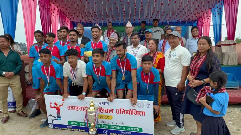 बिर्तामोड जेठ ४ ।। झापाको बिर्तामोडमा सञ्चालित वडास्तरीय पुरुष भलिबल प्रतियोगिताको उपाधि बिर्तामोड वडा नं ३ ले जितेको छ।