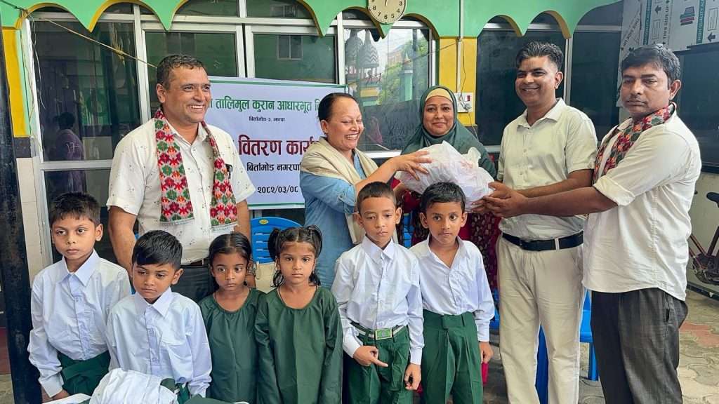 विद्यालय व्यवस्थापन समितिका सदस्य अफ्सर अहमदको अध्यक्षतामा सम्पन्न उक्त पोशाक वितरण कार्यक्रममा मुस्लिम धर्मगुरु मोहमद सज्जादले दुआ पढ्नुभएको थियो। मदरसा तालिमुल कुरान धार्मिक विद्यालय हो । कार्यक्रममा नेकपा एमाले बिर्तामोड नगर कमिटी अध्यक्ष सुवास भट्टराईको विशेष आतिथ्यता रहेको थियो ।