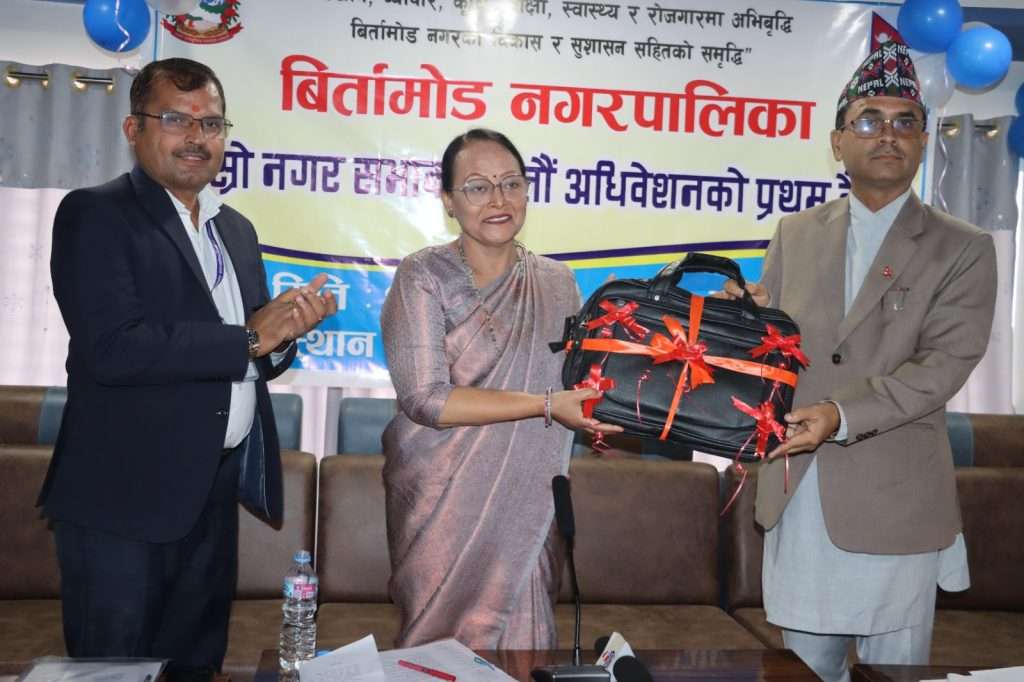 नगर सभाको सोमबार सुरु भएको बैठकमा नगर प्रमुख पवित्रा महतारा प्रसाईले नगर विकासका विभिन्न महत्त्वकांक्षी योजनासहितको नीति तथा कार्यक्रम प्रस्तुत गर्नु भयो ।