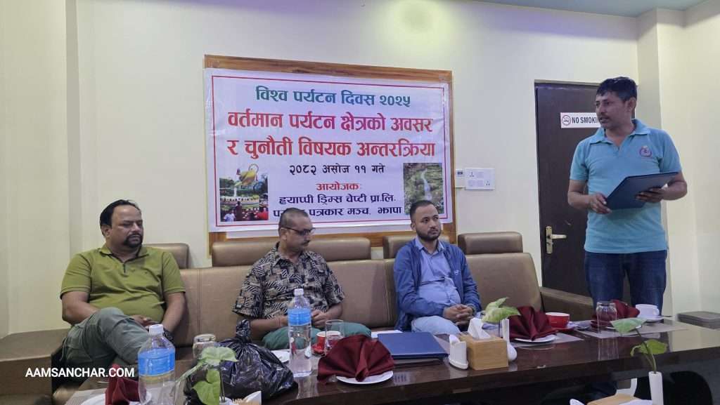 बिर्तामोड असोज ११ ।। विश्व पर्यटन दिवस २०२५ काे अवसरमा झापाको बिर्तामोडमा वर्तमान पर्यटन क्षेत्रको अवसर र चुनौती विषयक अन्तरक्रिया सम्पन्न भएको छ ।