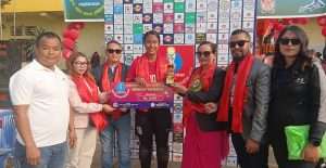 उनलाई प्रमुख अतिथि अर्जुनधारा नगरकी उपप्रमुख खड्गमाया पराजुली, नगद सौजन्यकर्ता सीता ढकाल सहआयोजक लक्ष्मी माविका अध्यक्ष वीरबहादुर राई नगर खेलकुद विकास समितिका अध्यक्ष सुरेन्द्र धिमाल लगायतले नगद पाँच हजार र ट्रफी प्रदान गरे
