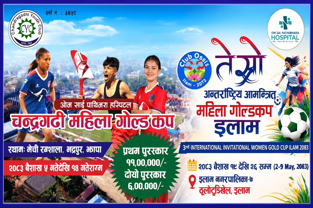 त्यसैगरी, इलाममा अर्को प्रतिष्ठित प्रतियोगिता आयोजना हुने भएको छ। ओएसिस फुटबल क्लब इलामको आयोजनामा वैशाख १९ गतेदेखि वैशाख २६ गतेसम्म तेस्रो संस्करण अन्तर्राष्ट्रिय आमन्त्रण महिला गोल्डकप सञ्चालन हुने तयारी भइरहेको छ। पहिलो र दोस्रो संस्करण सफलताका साथ सम्पन्न गरेको ओएसिस क्लबले तेस्रो संस्करणको तयारी तीव्र पारेको छ। लगातार यी दुई ठूला प्रतियोगिता आयोजना हुन लागेसँगै पूर्वी नेपालमा महिला फुटबलको माहोल थप उत्साहजनक बन्ने अपेक्षा गरिएको छ।