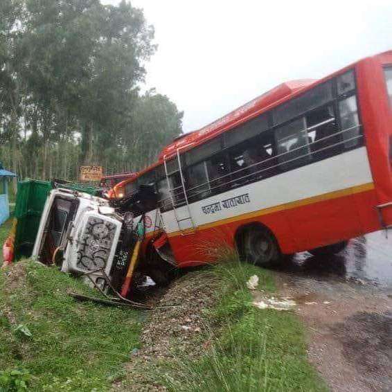 झिलझिलेबाट दमकतर्फ आउँदै गरेको बा । ३ ख २१६६ नम्बरको टिप्पर र पूर्वतर्फ जाँदै गरेको को । १ ख ५०८७ नम्बरको बस एकआपसमा ठोक्किएका थिए ।