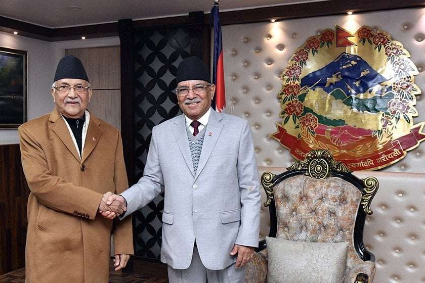 प्रधानमन्त्री प्रचण्ड र एमाले अध्यक्ष ओलीबीच भेटवार्ता
